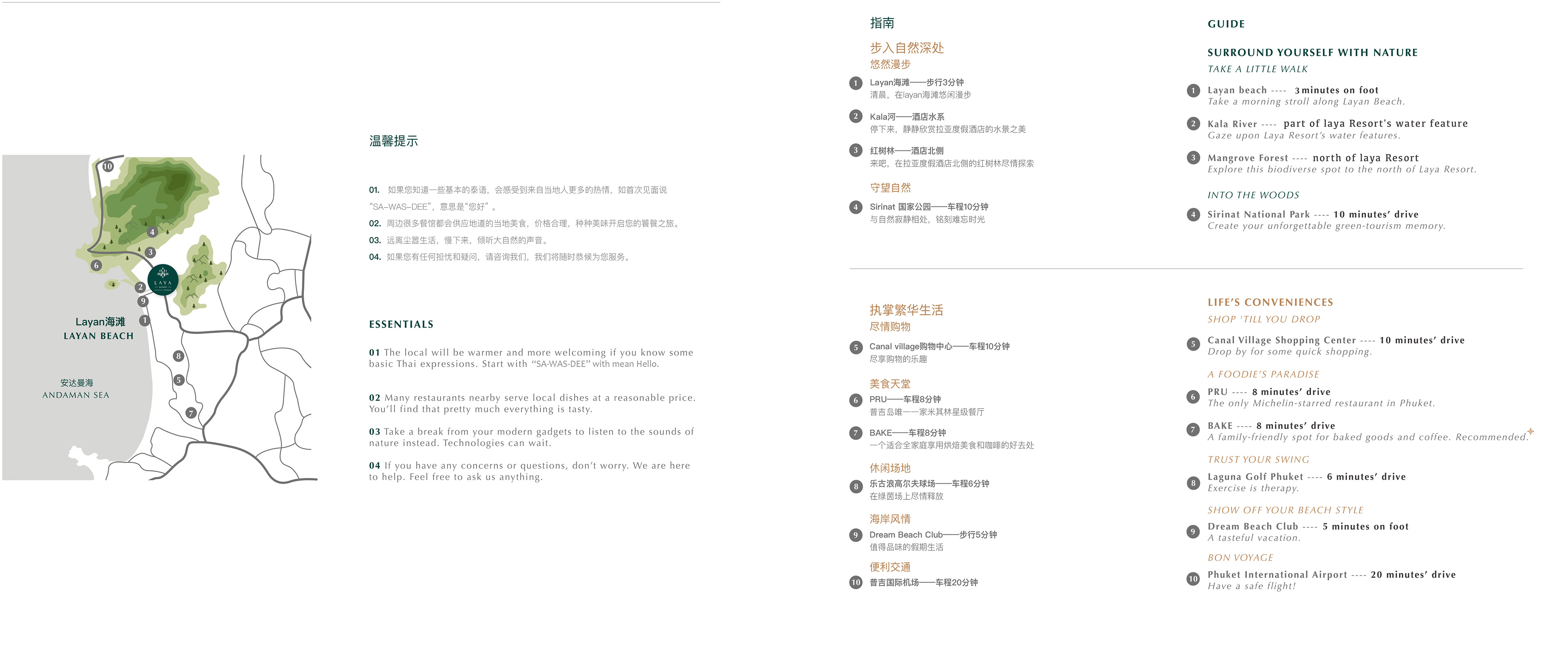 拉亚度假酒店,位于泰国普吉岛北部原始的layan海滩,为豪华度假酒店,步行即可享受亲海时光。拉亚度假酒店距海400米,于晨光熹微中,沿着layan海滩踱步而行,您可轻抚柔和的波浪,可欣赏蜿蜒的kala河,亦可眺望湛蓝Layan海滩不仅远离城市喧嚣,而且周边高端生活配套聚集,因此也是普吉最受欢迎的度假目的地之一。日落时分,夕阳光洒满这片向西的海滩上空,让人们不由自主的慢下来,享受安然的滨海之夜。